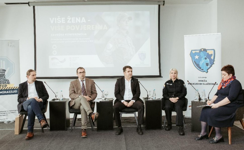 Dana 20.12.2023. godine u Sarajevu je održana završna konferencija “Više žena - više povjerenja", kojom je okončan projekat “Smanjenje diskriminacije na osnovu spola u policijskim strukturama u BiH”, koji je uspješno realiziran tokom 2023. godine.